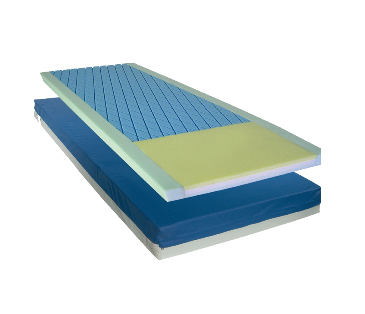 The high quality therapeutic foam mattress provides pressure redistribution and shear/friction reduction. Available with or without raised side rails. Foam mattresses are popular for their ability to reduce motion transfer and promote better spinal alignment. They are commonly used in homes, hospitals, and care facilities for improved rest and recovery.